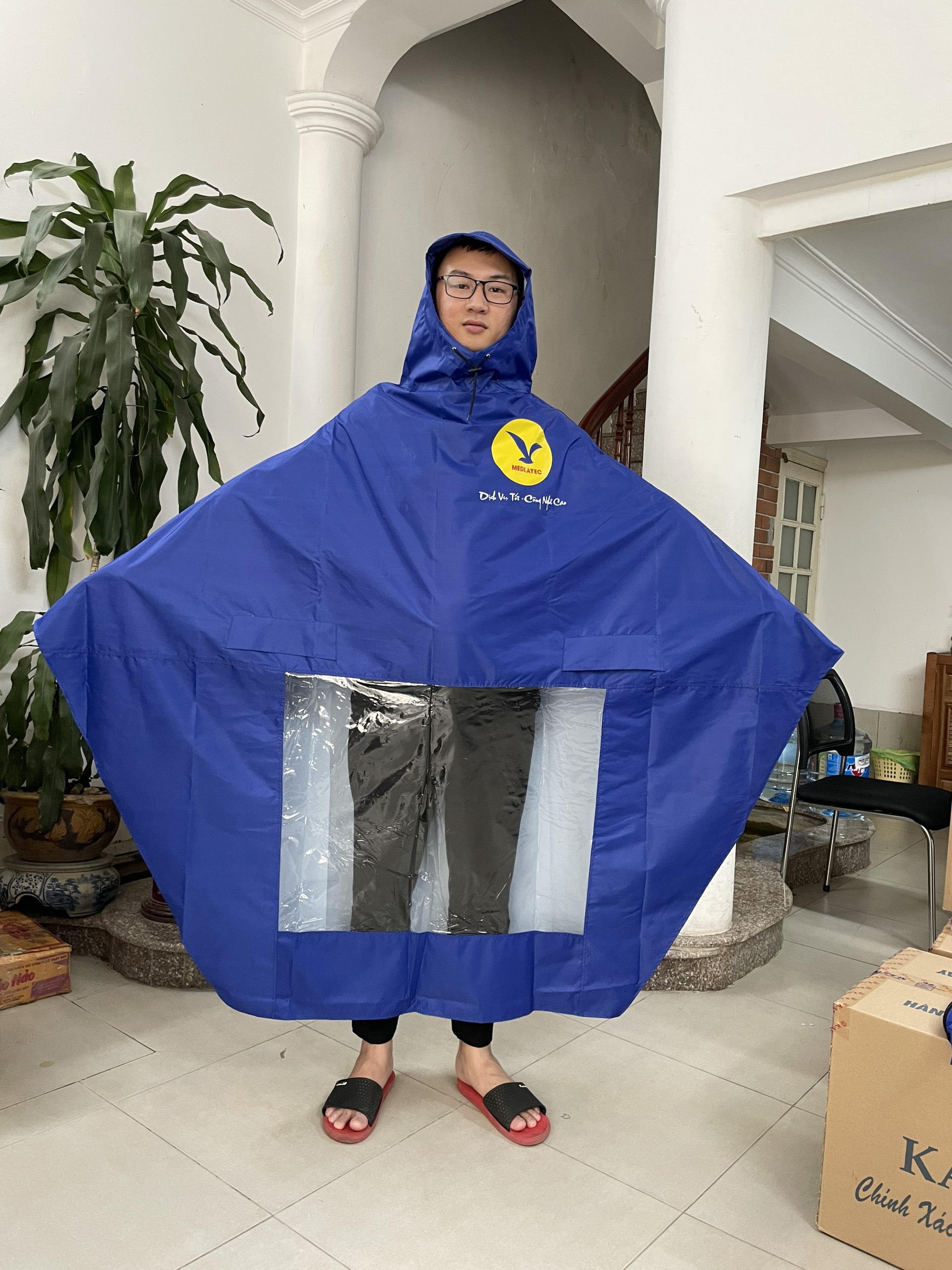 - Form poncho rộng rãi: Che phủ toàn thân và một phần xe máy, phù hợp cho cả nam và nữ.