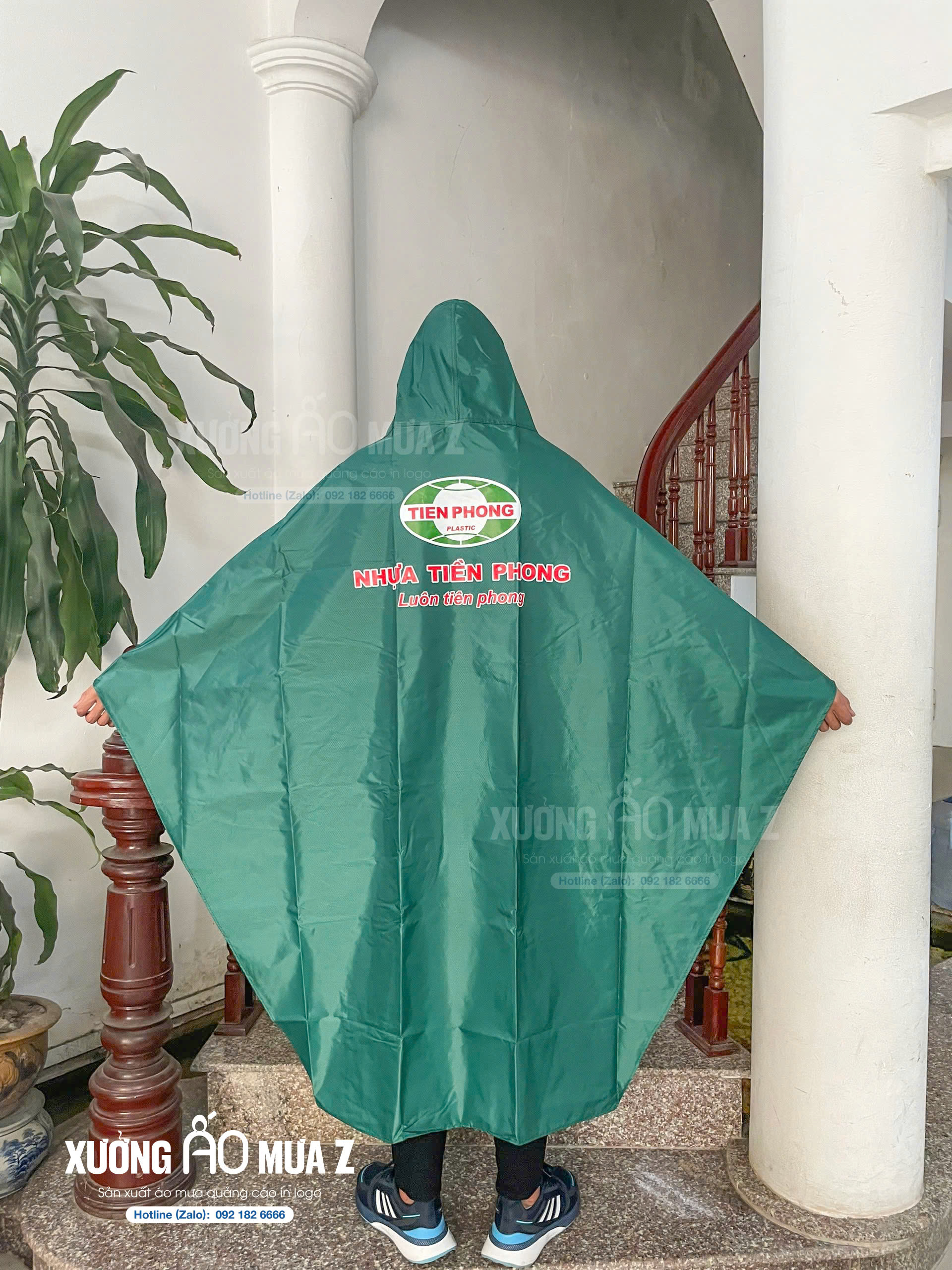 - Tên sản phẩm: Áo mưa cánh dơi in logo Nhựa Tiền Phong