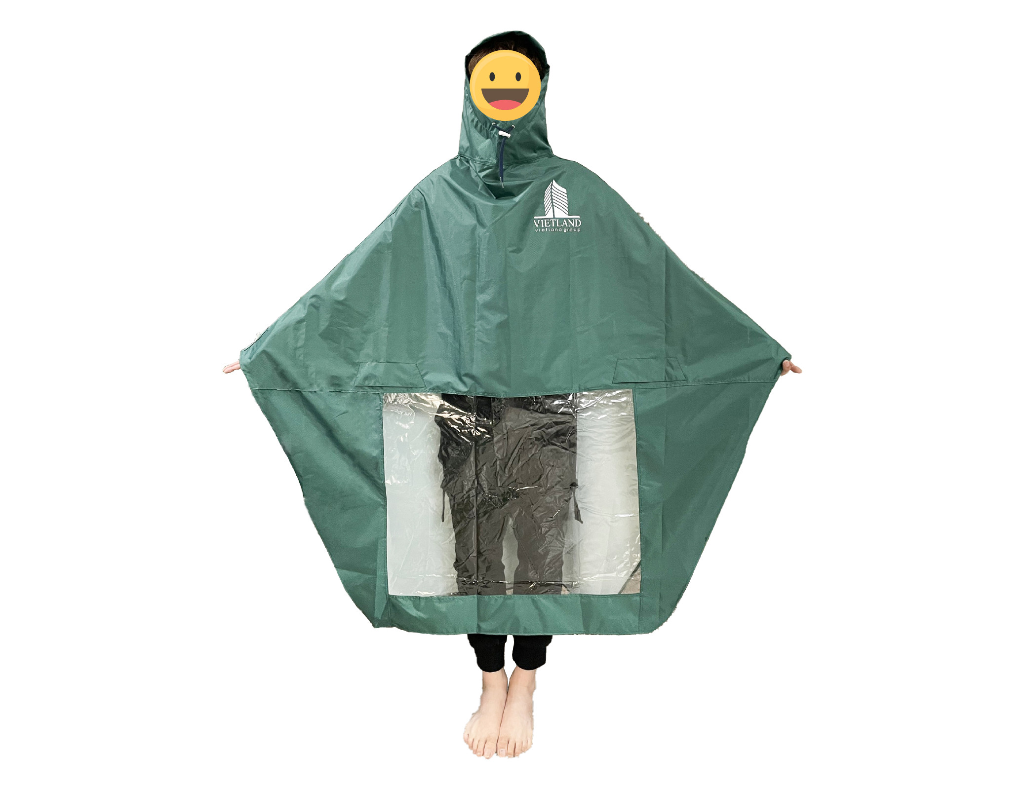 - Kiểu dáng: Áo mưa cánh dơi có mũ trùm, che phủ toàn diện.